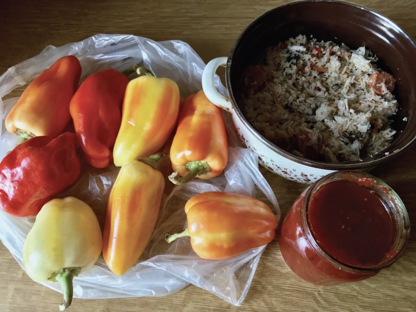 Papryka faszerowana kurczakiem i ryżem w sosie