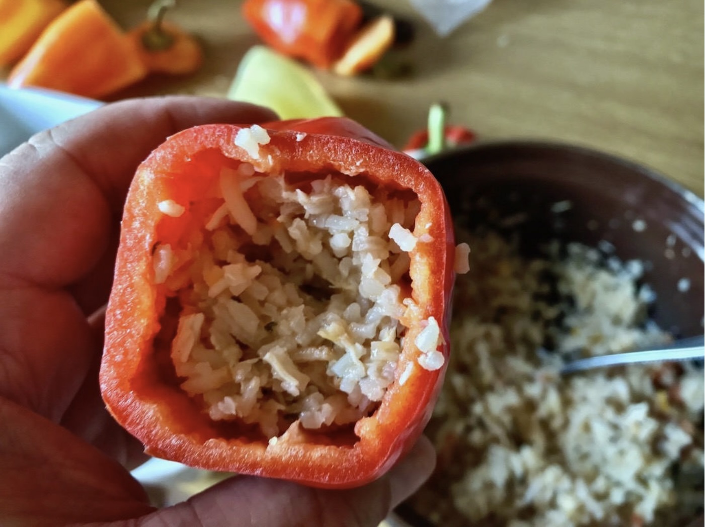 Nadziewaj papryki farszem z kurczaka i ryżu.