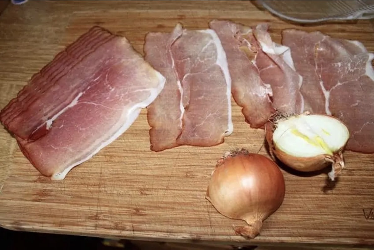 Cebulę i szynkę szwarcwaldzką pokrój w drobną kosteczkę.