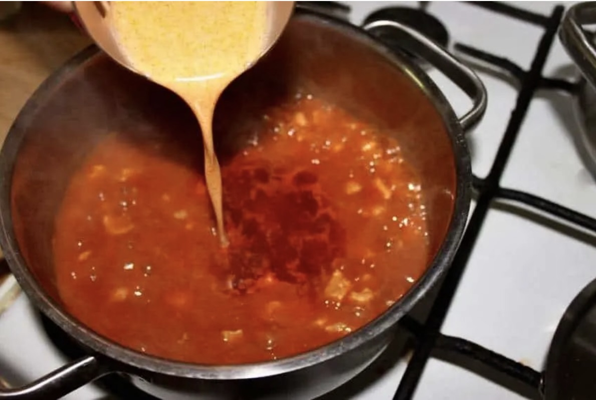 Zawartość patelni przełóż do garnka. Jeśli wolisz więcej sosu, dolej jeszcze nieco wrzątku.