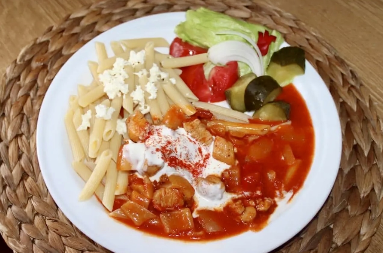 Jest to tradycyjne węgierskie danie, w którym mięso drobiowe dusi się w gęstym, paprykowym sosie, a następnie zabiela kwaśną śmietaną.