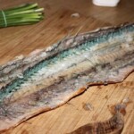 Przygotowanie belony: Usuń kręgosłup i ości z wędzonej belony. Ości belony są turkusowe, co ułatwia ich zauważenie.