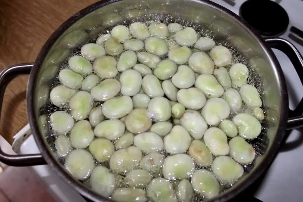 Gotowanie bobu: Bób wypłucz pod bieżącą wodą. Zalej go osoloną, gorącą wodą i gotuj do miękkości.