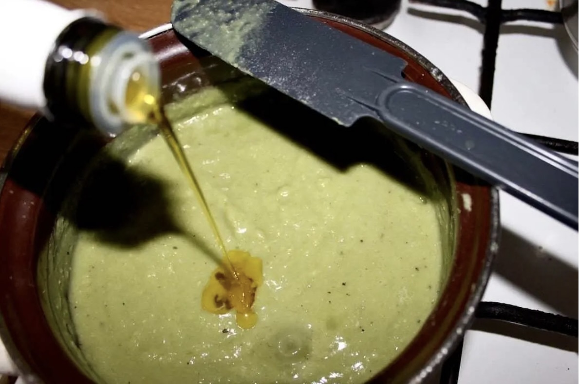 Oliwa: Na koniec wlej do masy łyżkę jak najlepszej oliwy extra vergine, zamieszaj i pozostaw do przestygnięcia.