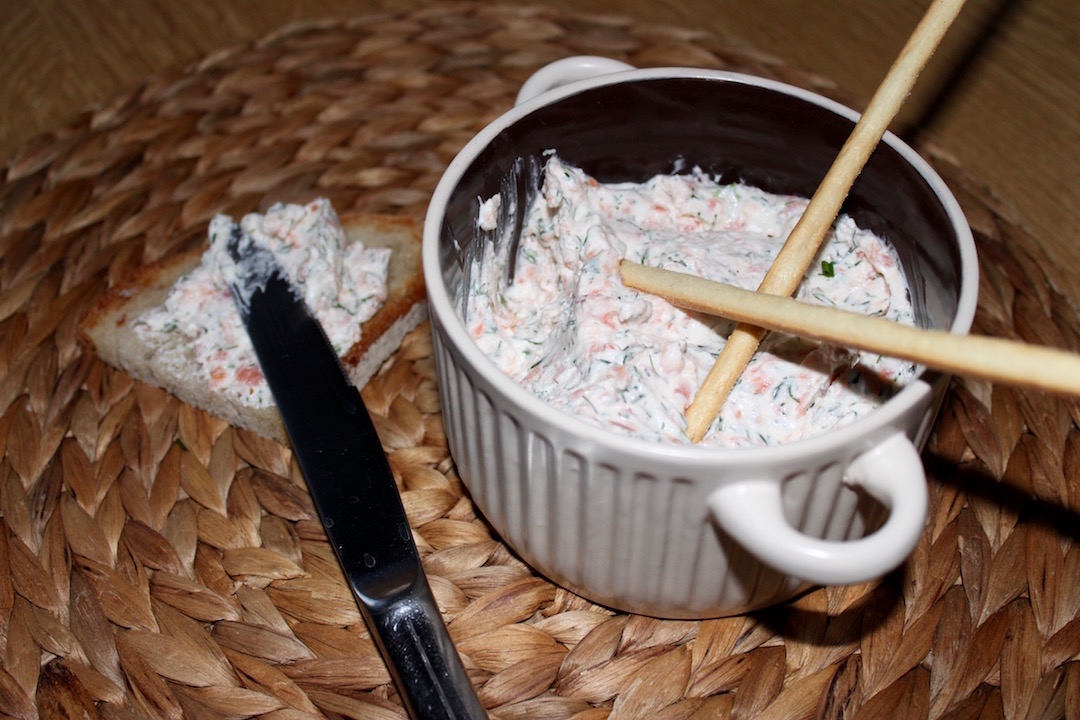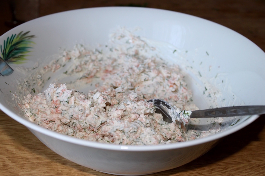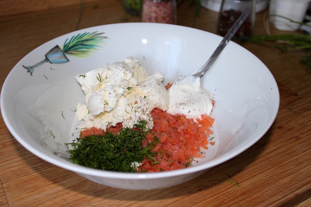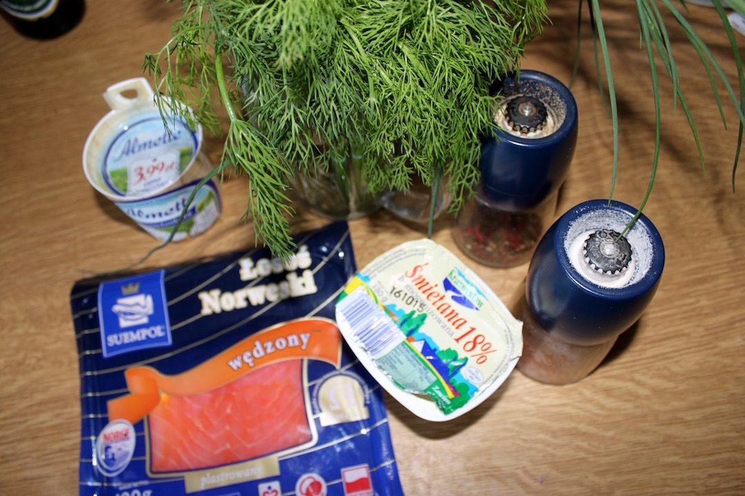 Pasta przygotowana jest ze zmielonego łososia wędzonego zmieszanego z puszystym serkiem, kwaśną śmietaną i świeżym koperkiem.