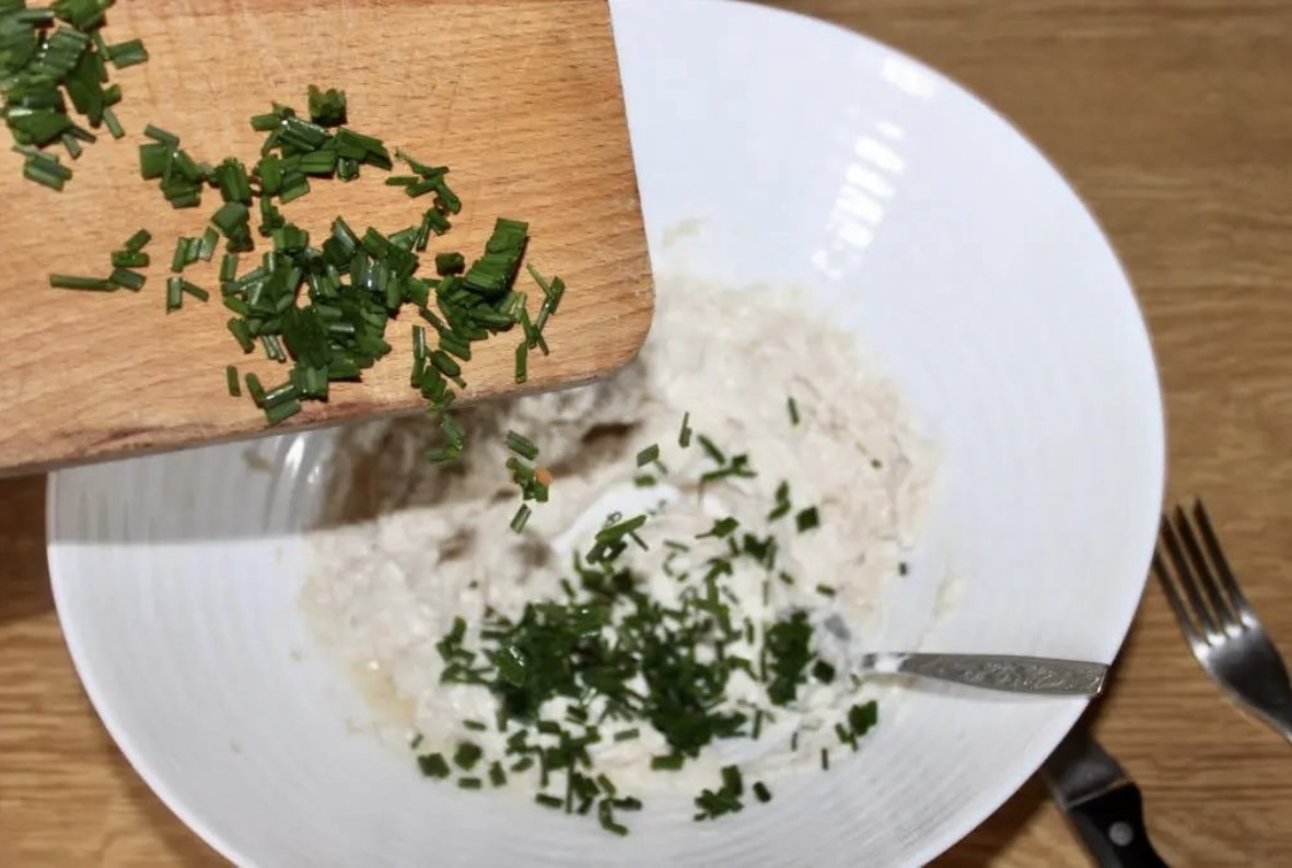 Doprawianie: Dodaj garść drobno posiekanego szczypiorku. Całość posól, a następnie posyp świeżo zmielonym pieprzem.