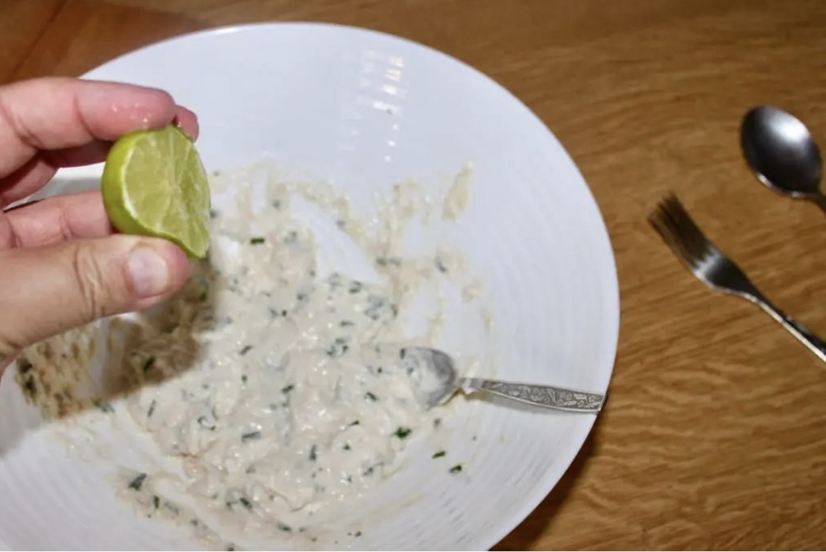 Dodanie oliwy i soku: Wlej 1-2 łyżeczki oliwy z tuńczyka (dodanie zbyt dużej ilości spowoduje, że pasta będzie zbyt płynna i tłusta). Dodaj odrobinę soku z limonki.