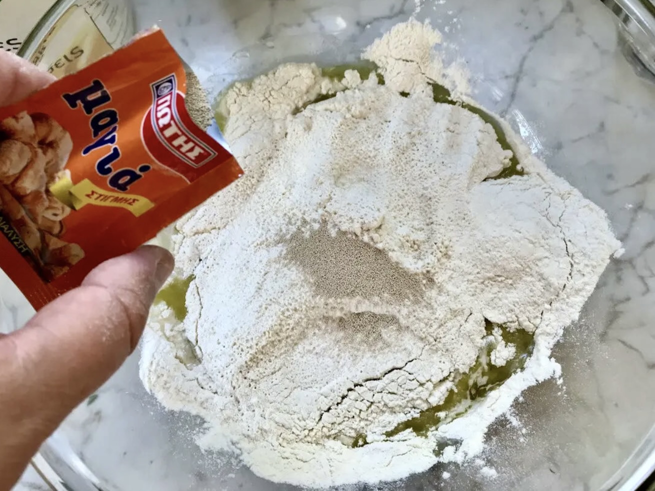 Przygotowanie ciasta: W misce wymieszaj olej/oliwę, jajko, jogurt i letnią wodę. Następnie dodaj mąkę, cukier, sól i drożdże (pamiętaj, aby drożdże nie miały bezpośredniego kontaktu z solą). Zagnieć na gładkie ciasto. Włóż ciasto do miski podsypanej mąką, a następnie przykryj suchą ściereczką i odstaw na 45 minut do wyrośnięcia.