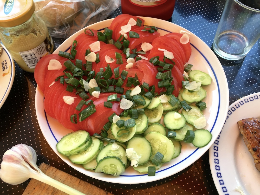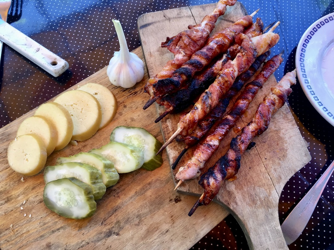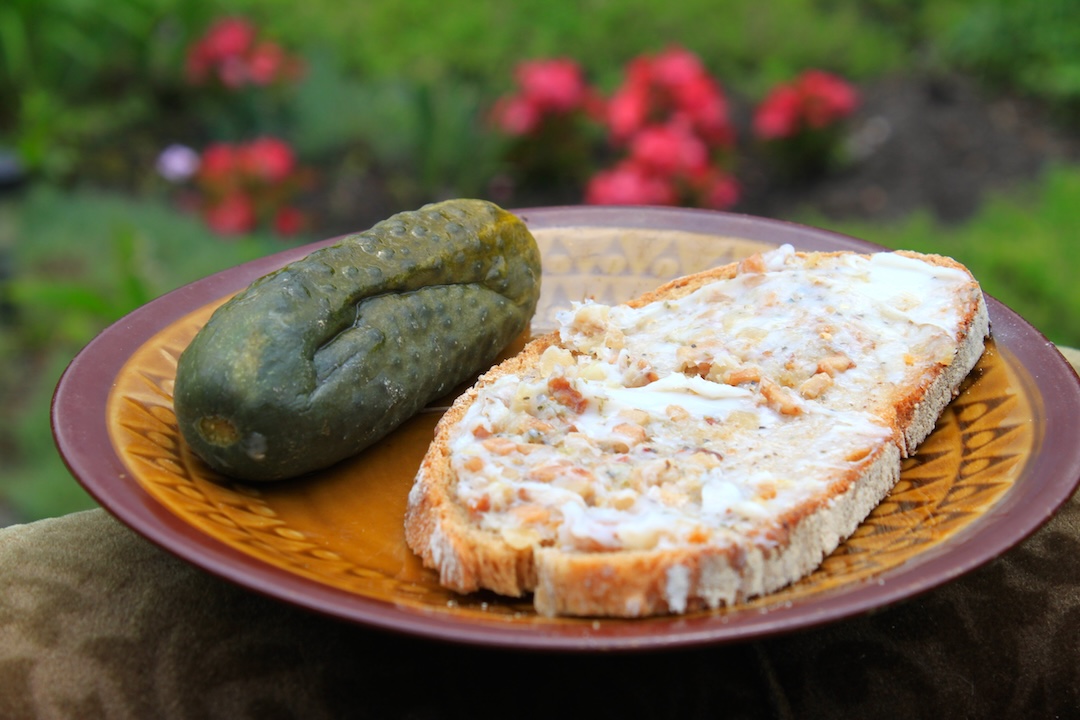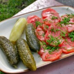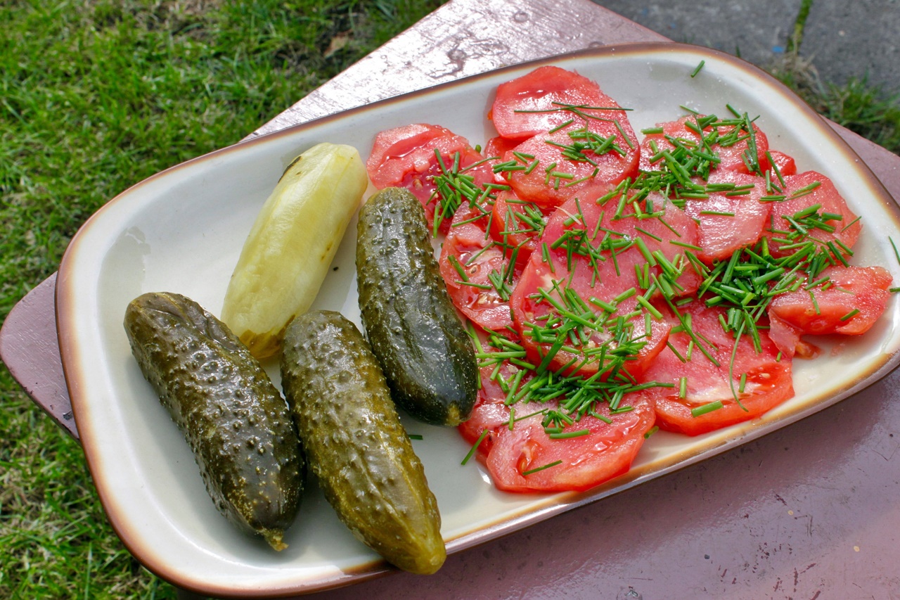 Reszta dodatków: Ogórki małosolne oraz oscypek pokrój w kostkę. Czosnek i szczypiorek (lub dymkę) drobno posiekaj.
