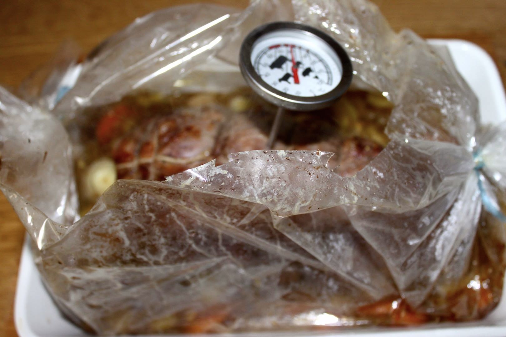 Po tym czasie wyjmij mięso i ostrożnie rozetnij rękaw u góry.