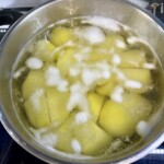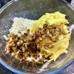 Ziemniaki: Obierz i ugotuj 800 g ziemniaków. Odcedź je i przeciśnij przez praskę, a następnie odstaw do przestygnięcia.