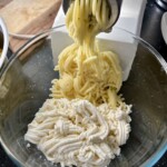Twaróg: Zmiel 500 g tłustego twarogu w maszynce (lub przeciśnij przez praskę) i przełóż do dużej miski.