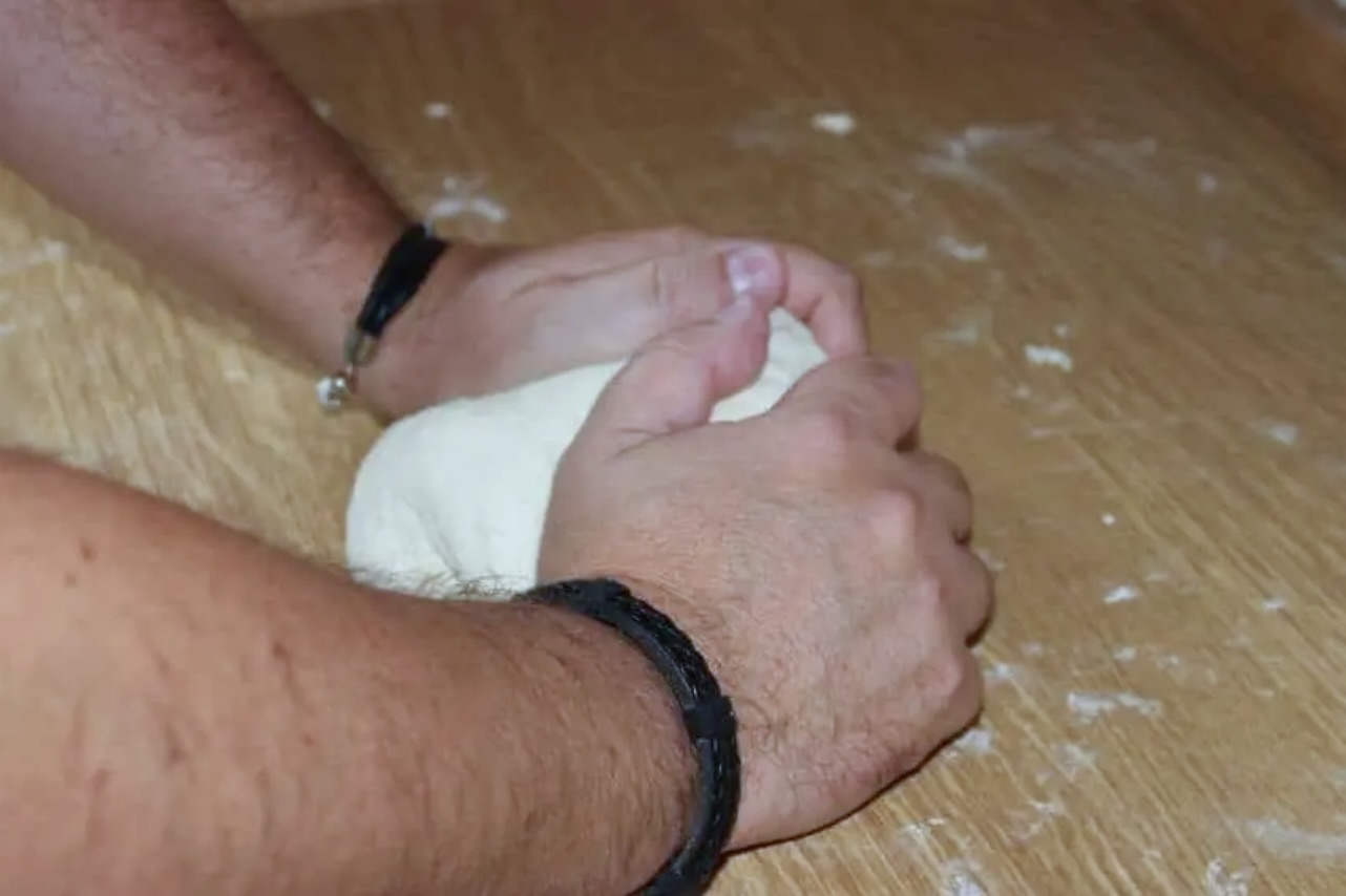 Gdy ciasto osiągnie właściwą, dość miękką (ale nie „luźną”) konsystencję, wyrabiaj je starannie przez około 5 minut.