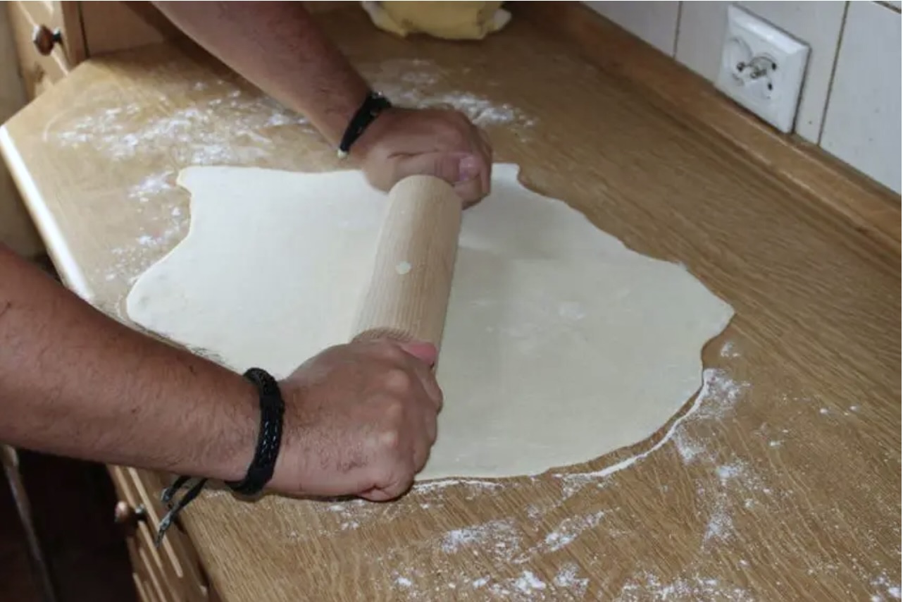 Odkrój ⅓ ciasta, a następnie rozwałkuj je dość cienko.