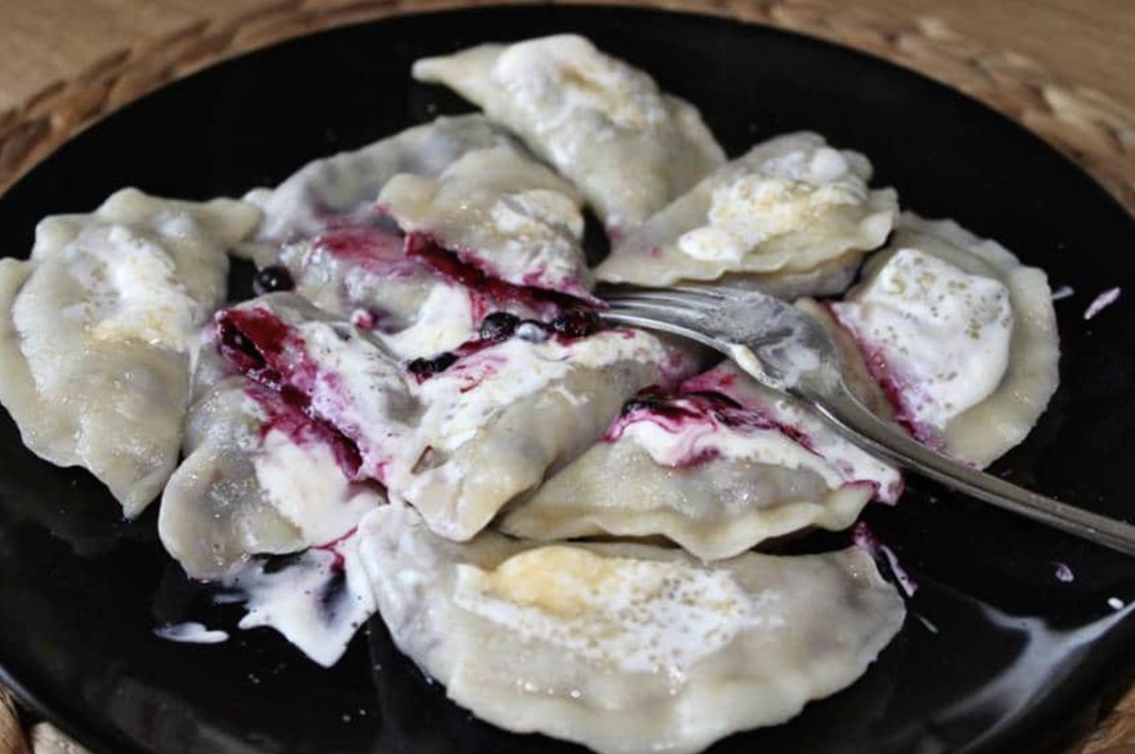 Pierogi z borówkami i kwaśną śmietaną