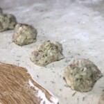 Nakładaj około 20 gramów farszu na wycięte lub zaznaczone na cieście kółka/kawałki.