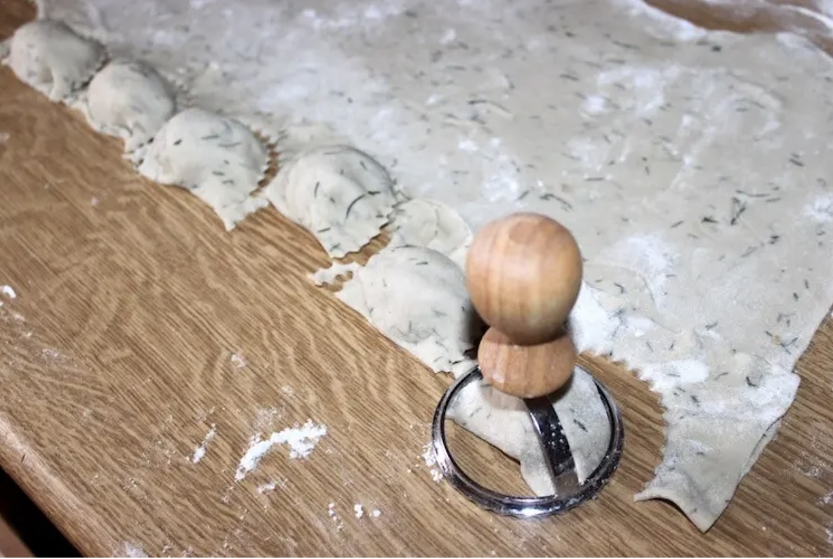 Zlep pierogi ręcznie lub użyj stempla do wykrawania.