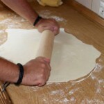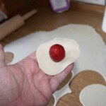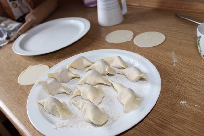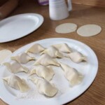 Lepienie: Gotowe ciasto wałkuj, aby uzyskać dość cienkie płaty. Szklanką wykrawaj kółka. Nie rób ich zbyt wiele na zapas, aby nie wyschły.