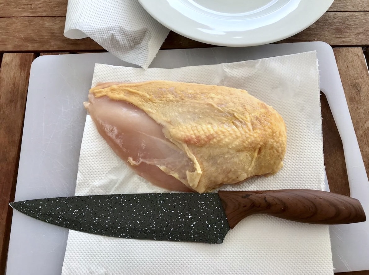 Przygotowanie kurczaka: Mięso umyj i osusz ręcznikiem papierowym. Oprósz solą, świeżo zmielonym pieprzem i wmasuj w nie odrobinę oliwy.