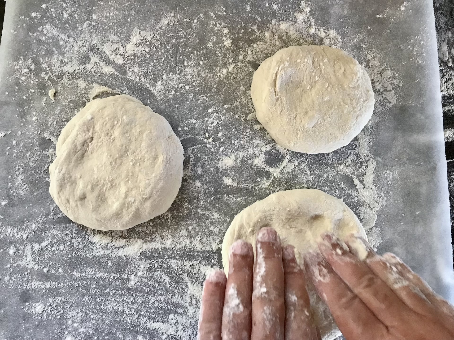 Ostateczne formowanie i nacinanie: Delikatnie ugniataj kule ciasta opuszkami palców od środka na zewnątrz. Delikatnie naznacz gotowe pity lepinje (w kratkę) odwrotną stroną dużego noża.