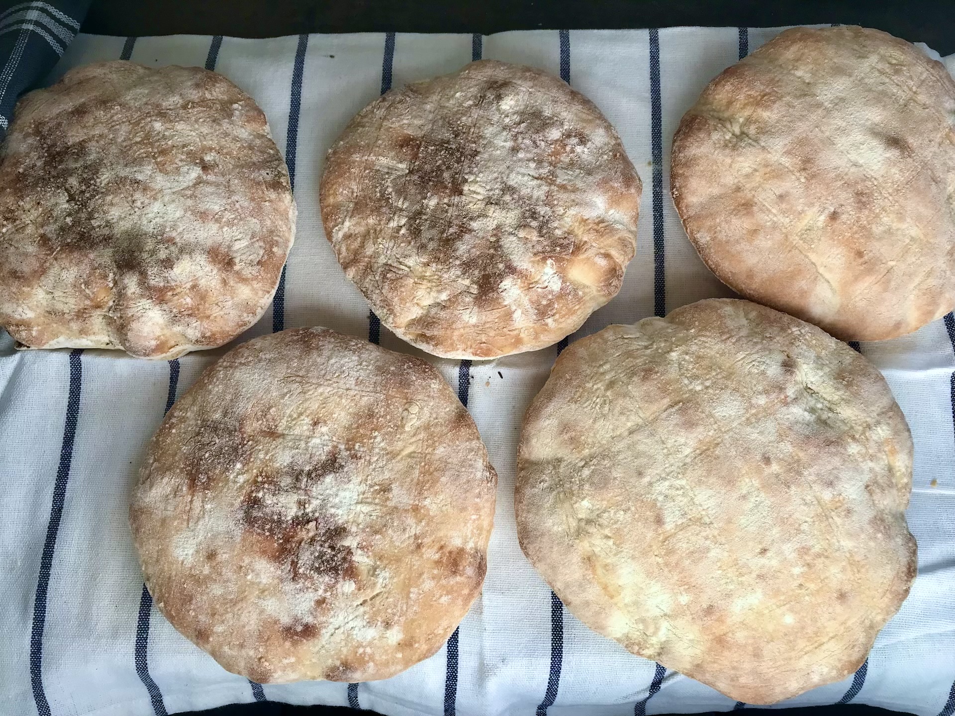 Odpoczynek: Upieczone chlebki wyłóż na tacę wyłożoną suchą ściereczką, przykryj drugą ściereczką, a następnie odstaw na kilkanaście minut.