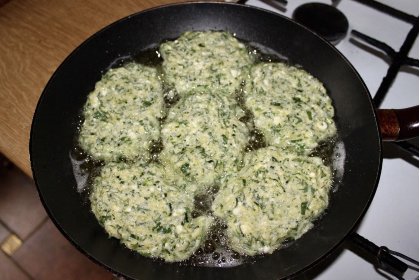 Smażenie: Na patelni rozgrzej większą ilość oleju. Nakładaj masę łyżką, formując niewielkie placki. Smaż na średnim ogniu przez kilka minut z każdej strony, aż będą złociste.