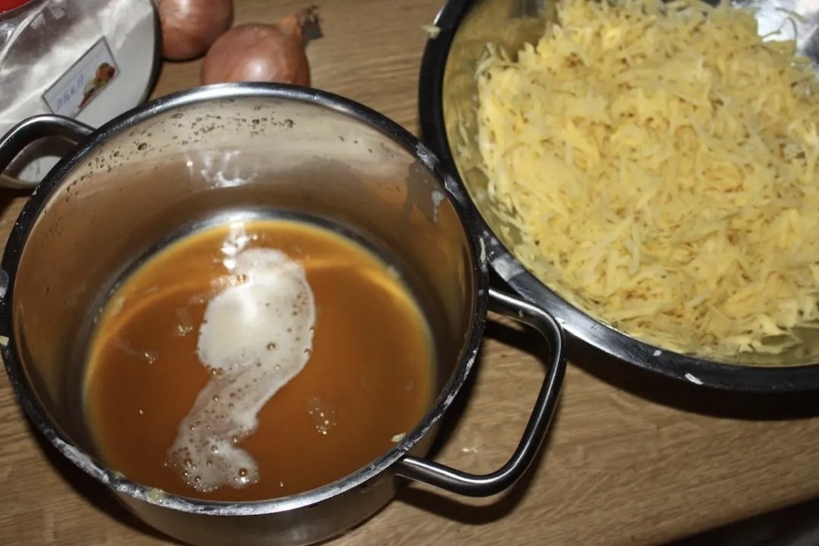 Wodę, która spłynęła do garnka, odstaw na chwilę, by skrobia osiadła na dnie.
