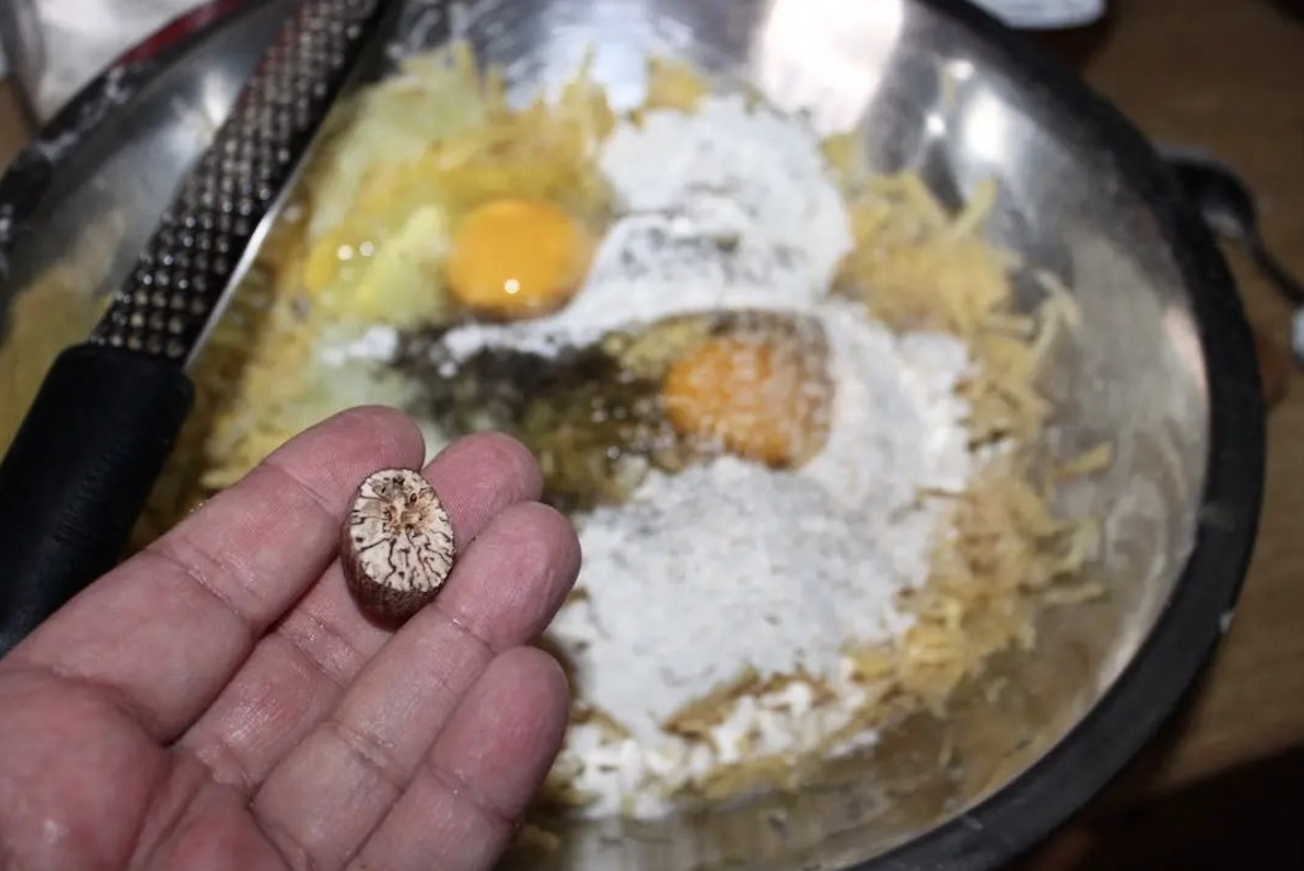 Przyprawy: sól, sporo świeżo zmielonego pieprzu, dość dużo tartej gałki muszkatołowej,