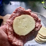 Nadziewanie: Na jeden placek mięsa połóż plaster sera, a następnie przykryj drugim plackiem. Uformuj kotleta tak, aby ser był całkowicie ukryty.