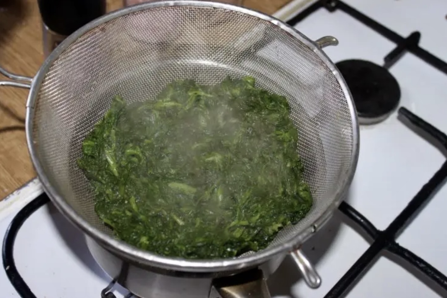 Gotowy szpinak przełóż na sito i pozostaw do odcieknięcia.