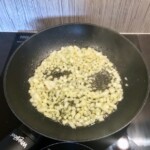 Na patelni rozgrzej oliwę i nieco masła, a następnie wrzuć cebulę. Smaż krótko, aby się zeszkliła.