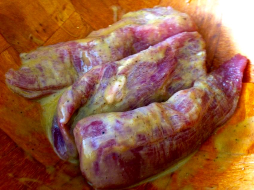 Uzyskaną marynatą posmaruj i dobrze wetrzyj w mięso.