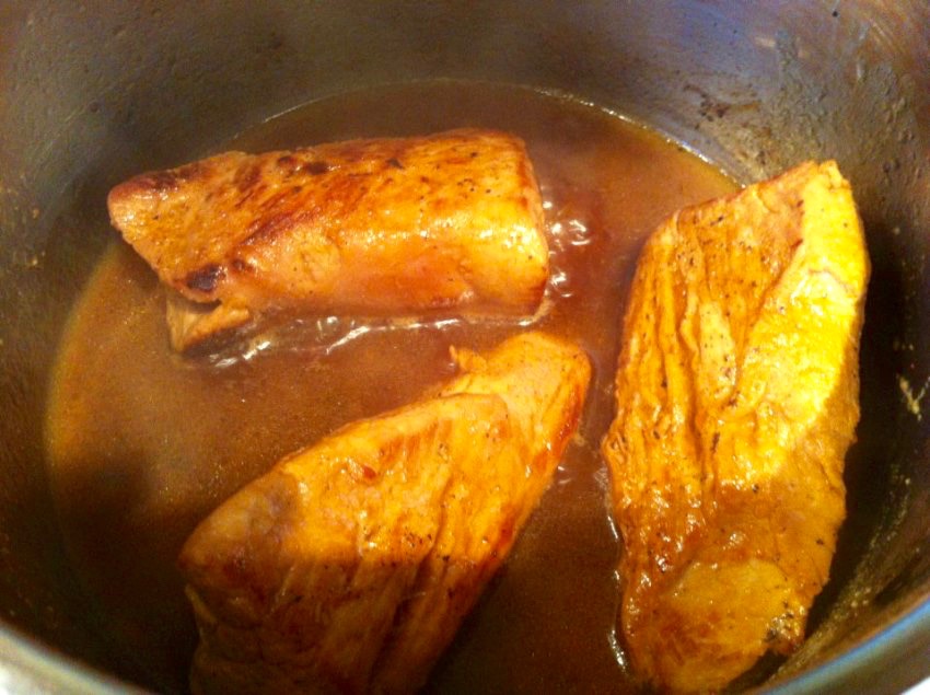 Duś mięso na wolnym ogniu przez około 30 minut, aż polędwiczki zmiękną, a sos ulegnie redukcji.