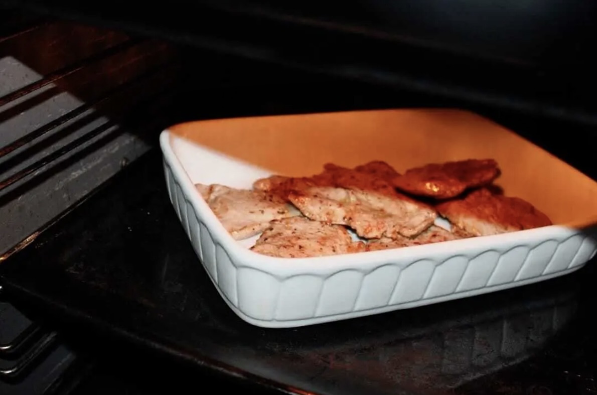 Krótko przesmażone mięso odsącz na ręcznikach papierowych z nadmiaru tłuszczu, a następnie przełóż do naczynia żaroodpornego.