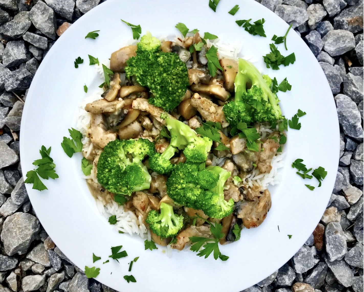 Polędwiczki wieprzowe w sosie pieczarkowym najlepiej smakują podane np. z ryżem i gotowanym brokułem.