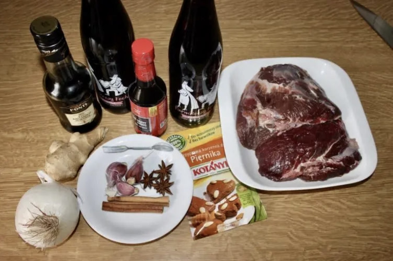 750 ml piwa korzennego (lub piernikowego, ciemnego, ale nie słodkiego)