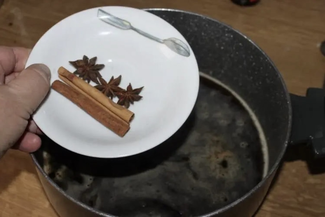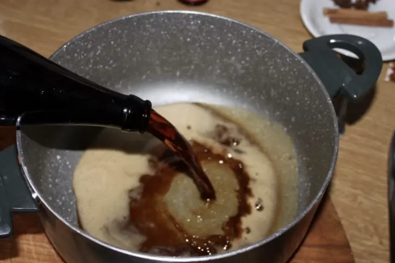 W dużym garnku wymieszaj piwo, sos sojowy, ocet balsamiczny, anyż, cynamon i przyprawę do piernika.