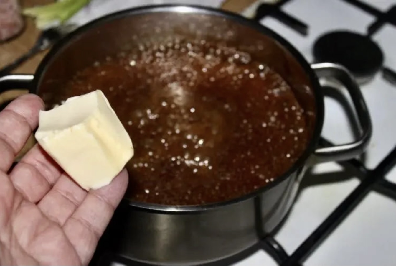 Wrzuć dużą łyżkę zimnego masła. Zmniejsz ogień i mieszaj, aż masło się rozpuści, a sos zgęstnieje.
