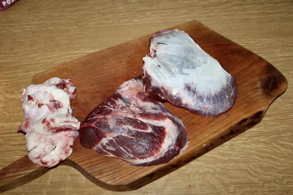 dwa policzki wołowe o łącznej wadze około 1 kilograma;