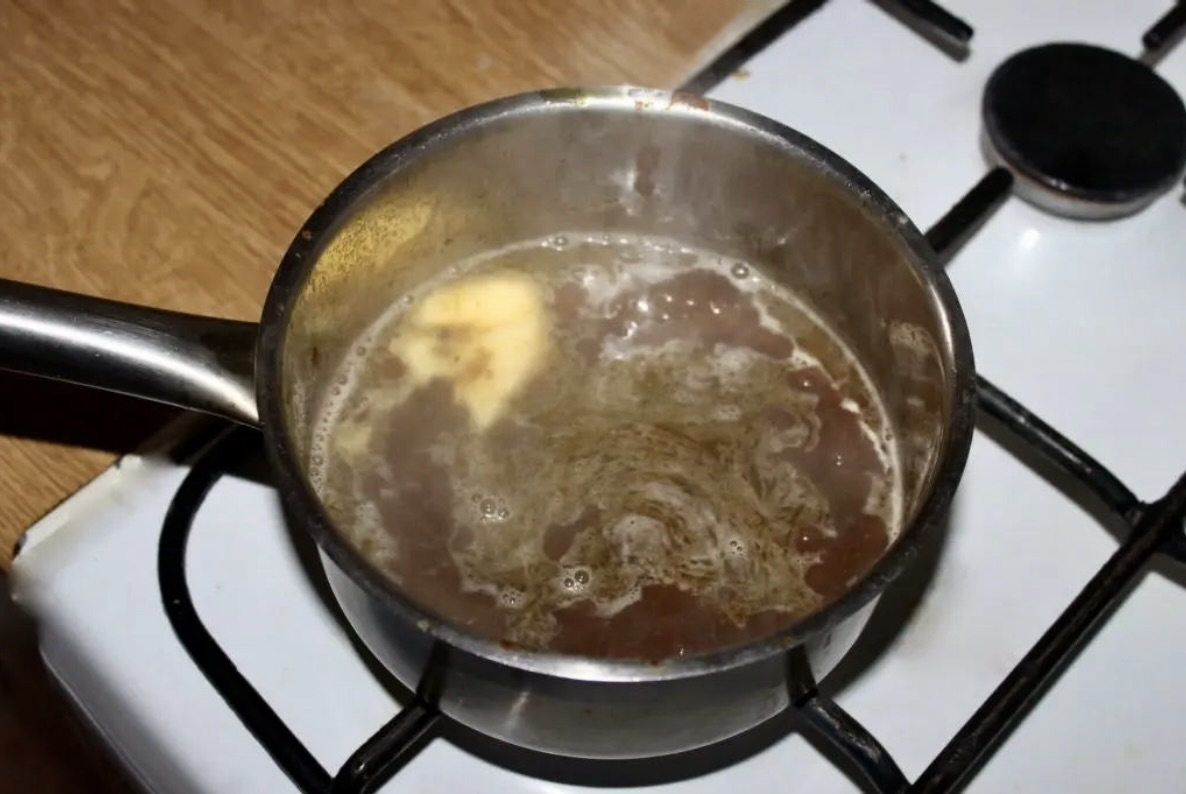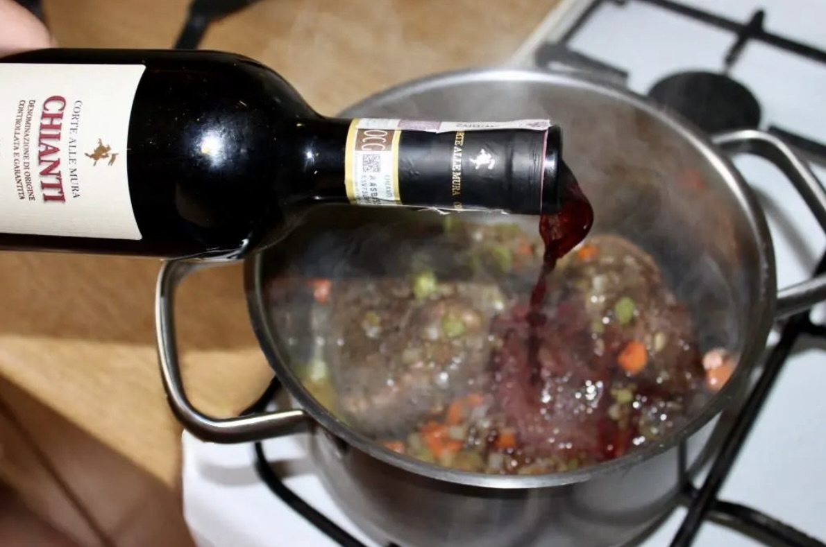 Wlej pół butelki wina i 2 duże chochle domowego wywaru.