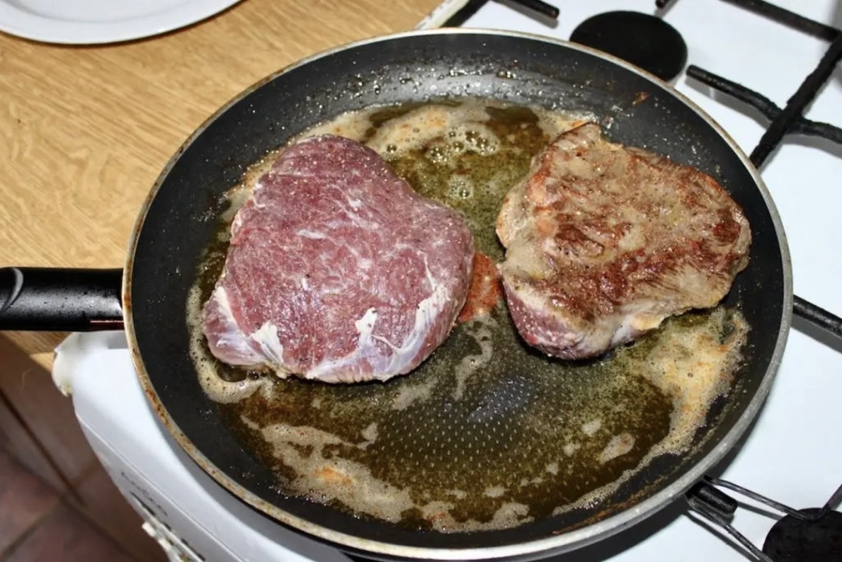 Smażenie: Rozgrzej masło i oliwę na patelni. Smaż policzki na mocnym ogniu przez kilka minut z obu stron, aż się zrumienią. Zdejmij mięso, posól i popieprz z obu stron, a następnie odłóż na talerz.