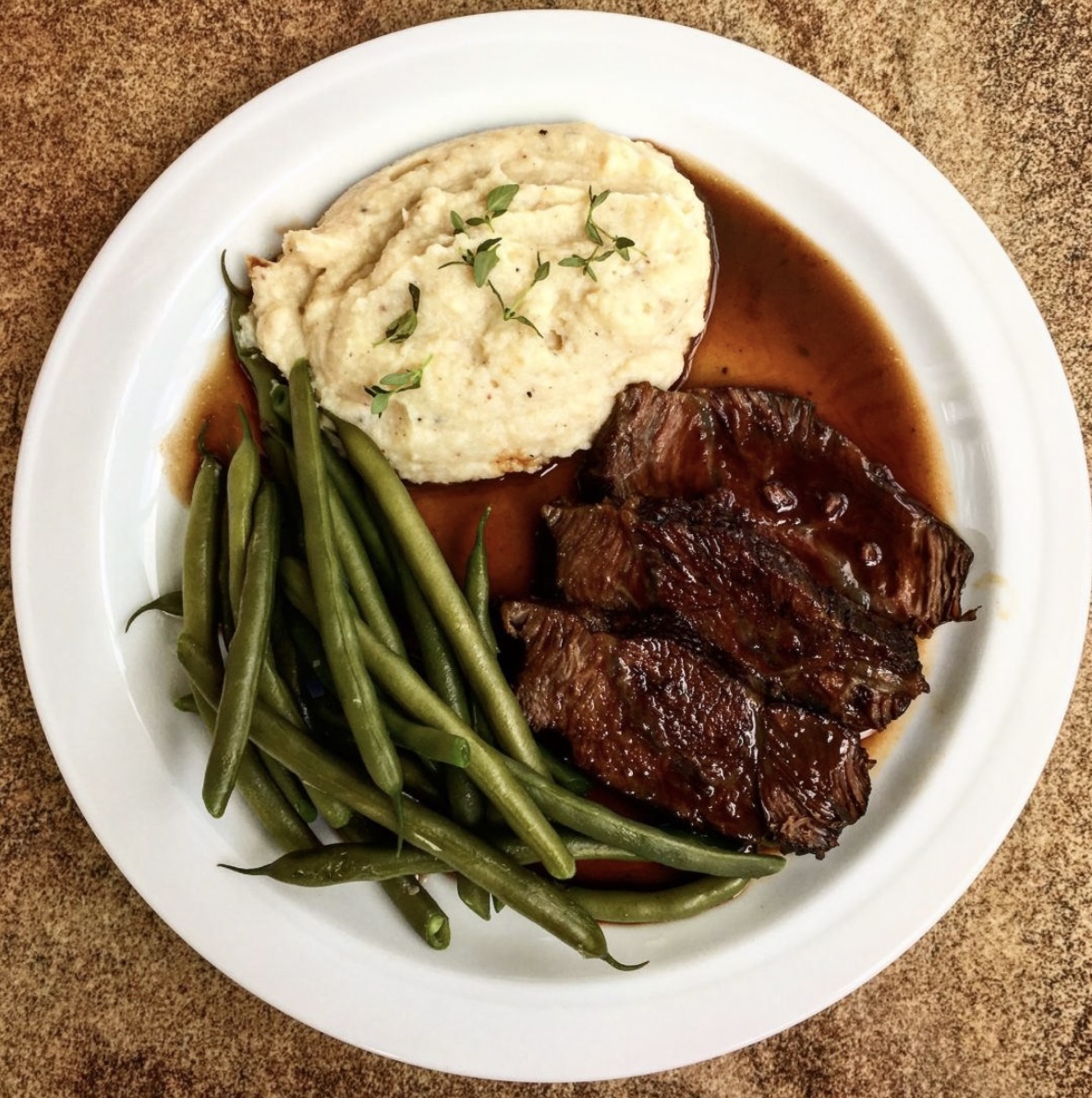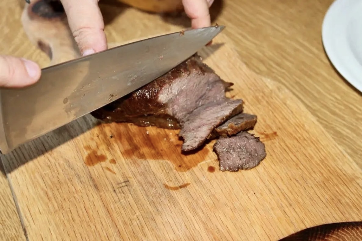 Podanie: Włóż mięso z powrotem do sosu, polewając je. Przykryj garnek, a następnie odczekaj kilka minut. Tuż przed podaniem wyjmij mięso i pokrój w plastry w poprzek włókien.