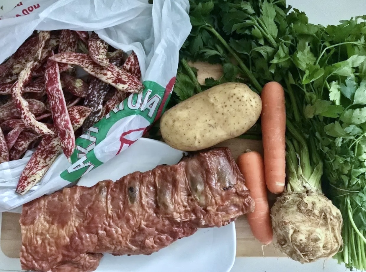 Prosta zupa fasolowa jest propozycją łatwą do przygotowania i dającą dużą frajdę przy jej konsumpcji. Mam kilka przepisów na fasolówki bez mięsnej bazy, jednak nie da się ukryć że mięsne wersje zup fasolowych smakują naprawdę wyśmienicie. Konkretnie to bazą mojej prostej zupy fasolowej jest żeberko wędzone, które kupiłem u rzeźnika. Powiem, że nieczęsto mam szczęście kupić tak wspaniale i prawdziwie uwędzone żeberko, nic zatem dziwnego że zupa wyszła znakomicie. Szukaj rzeźnika, kupuj tylko prawdziwie wędzone wyroby. Różnicę odczujesz błyskawicznie.