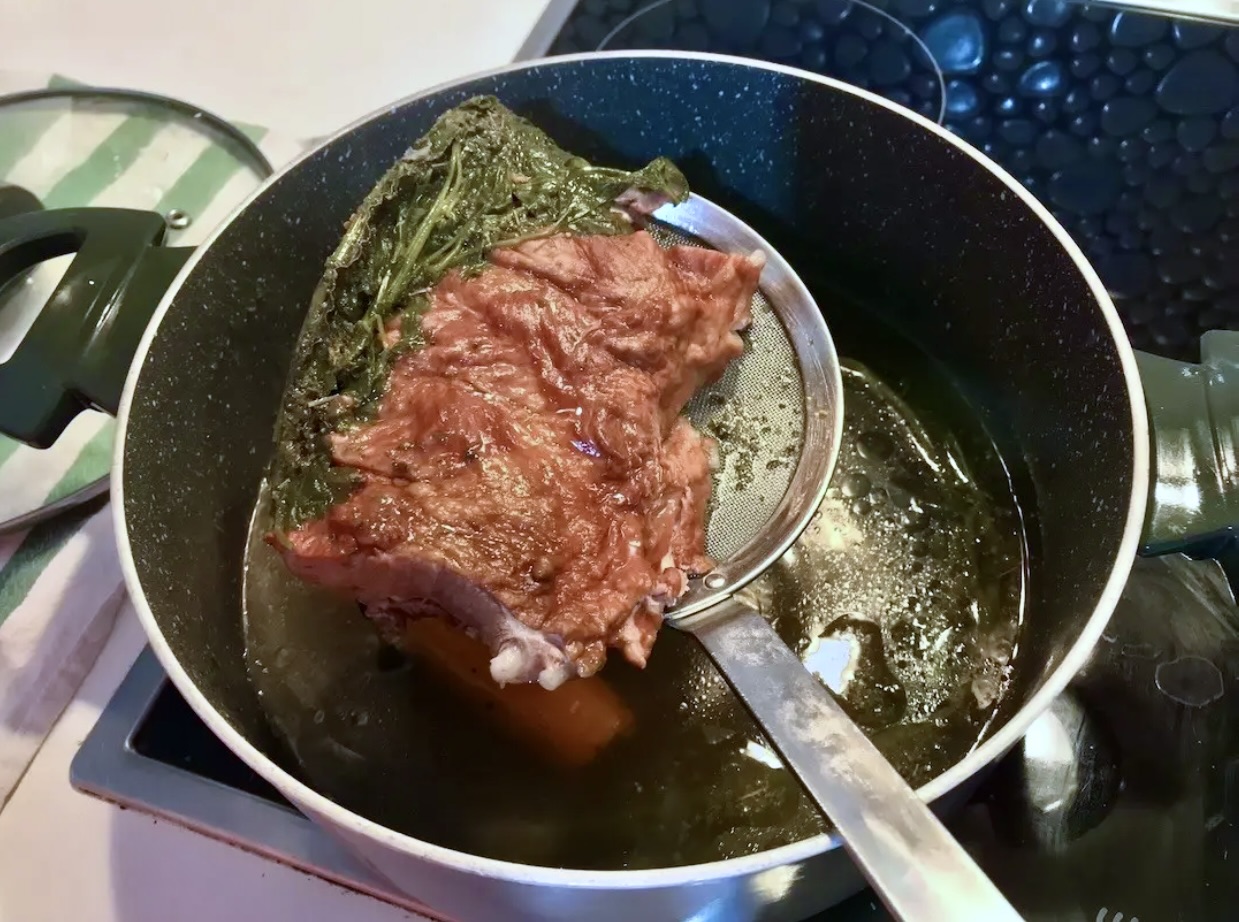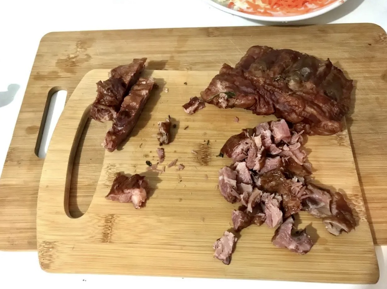 Gdy żeberko wędzone jest już miękkie, wyłóż je na talerz i pozostaw, aby nieco przestygło.