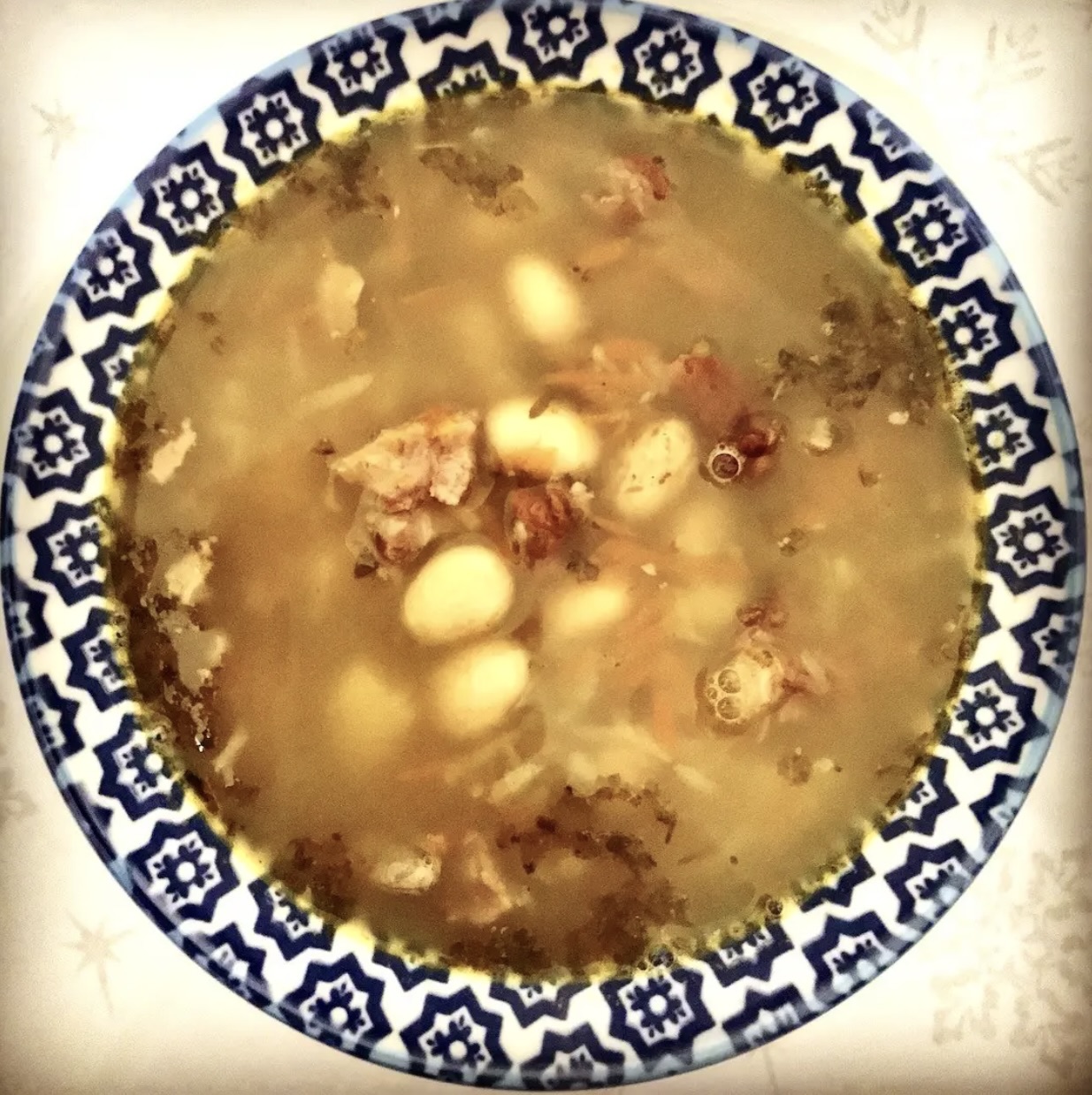 Prosta zupa fasolowa najlepiej smakuje podana na drugi dzień po przygotowaniu, z porządną kromką wiejskiego chleba.