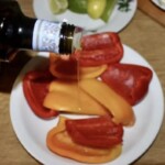 Papryki pozbaw gniazd nasiennych, oczyść z błonek i pokrój na 4-6 części.