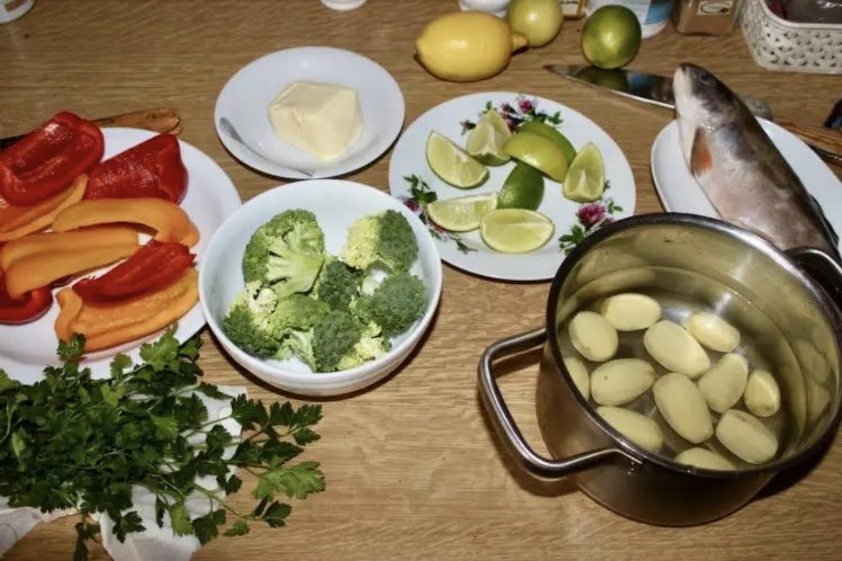 Wyciśnij sok ze wszystkich cząstek limonek na rybę i warzywa. Wytłoczyny wrzuć obok.