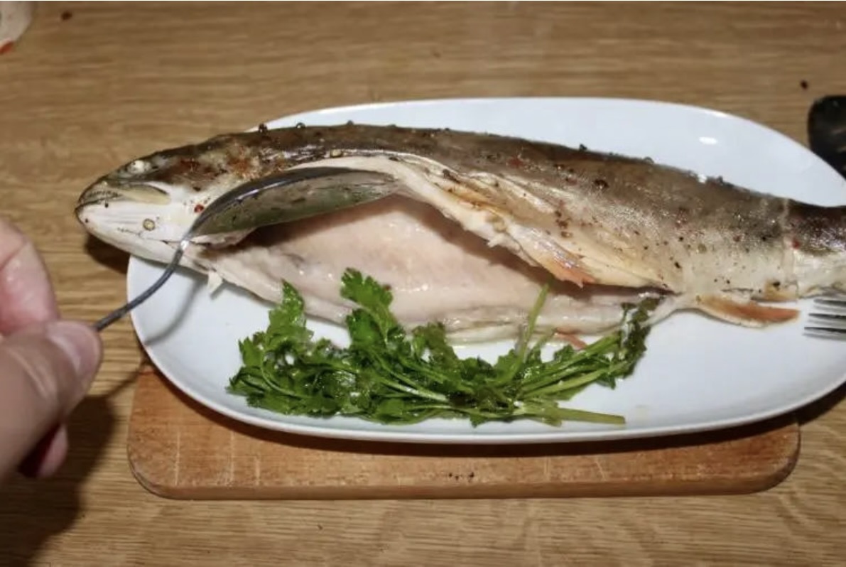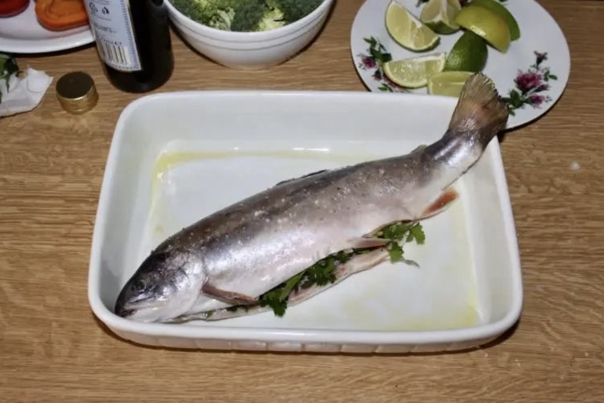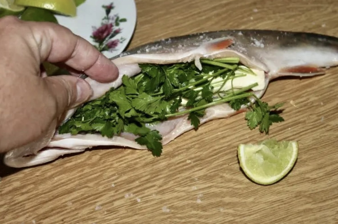 Wyjmij natkę pietruszki z wnętrza pstrąga.
