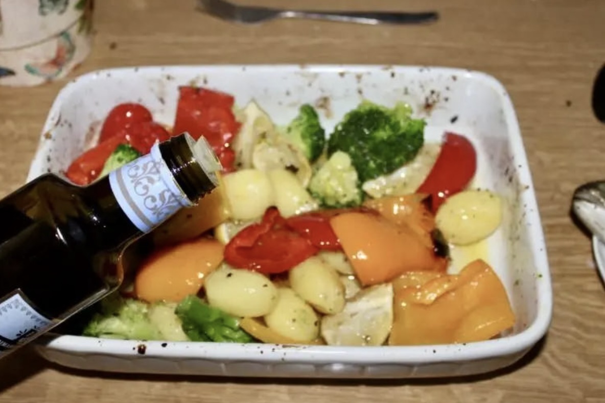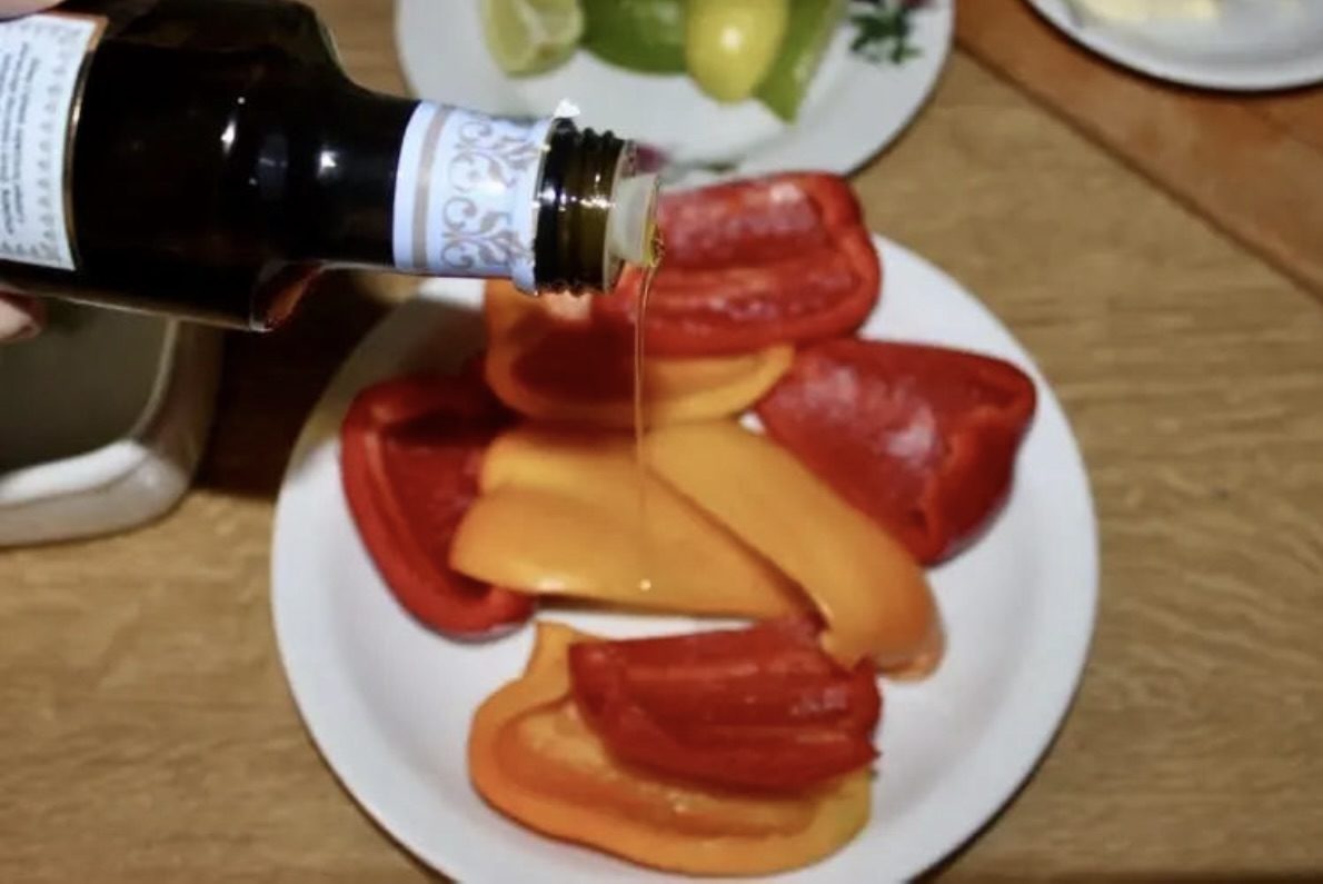 Paprykę skrop obficie oliwą, a następnie włóż do naczynia obok ryby.