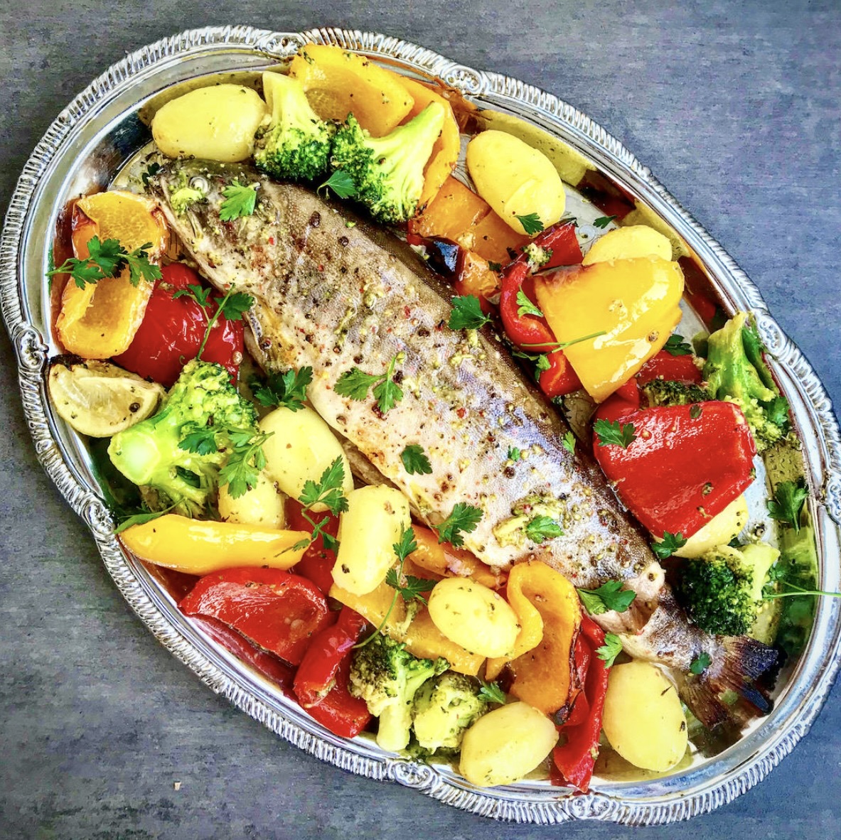 Pstrąg z piekarnika to łatwa i szybka sprawa. Oczywiście jak najświeższa ryba to podstawa w tym daniu, to jasne. Warzywa wybrałem kolorowe i różne. Ty możesz użyć tylko jednego rodzaju warzywa, albo po prostu podać rybę w inny sposób. Mam jednak nadzieję, że dasz się namówić na moją wersję tego dania. Wiem, że nie będziesz tego żałować. Mój pstrąg z piekarnika smakuje naprawdę perfekcyjnie, a pieczone z nim warzywa smakują wyjątkowo. Dlaczego? Dowiesz się z przepisu.